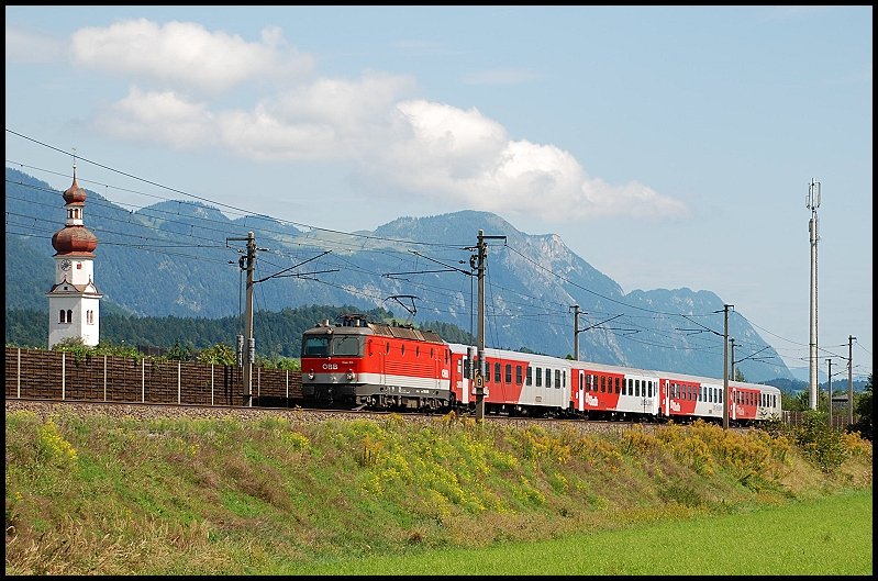 Österreichurlaub 2008 - ÖBB: Ein RegionalExpress ist mit einer 1144er in Richtung Innsbruck unterwegs. Aufgenommen am 04.September 2008 bei Radfeld.