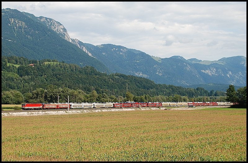 Österreichurlaub 2008 - ÖBB: Zwei 1261er sind mit einer ROLA zum Brenner unterwegs. Aufgenommen am 04.September 2008 bei Radfeld.