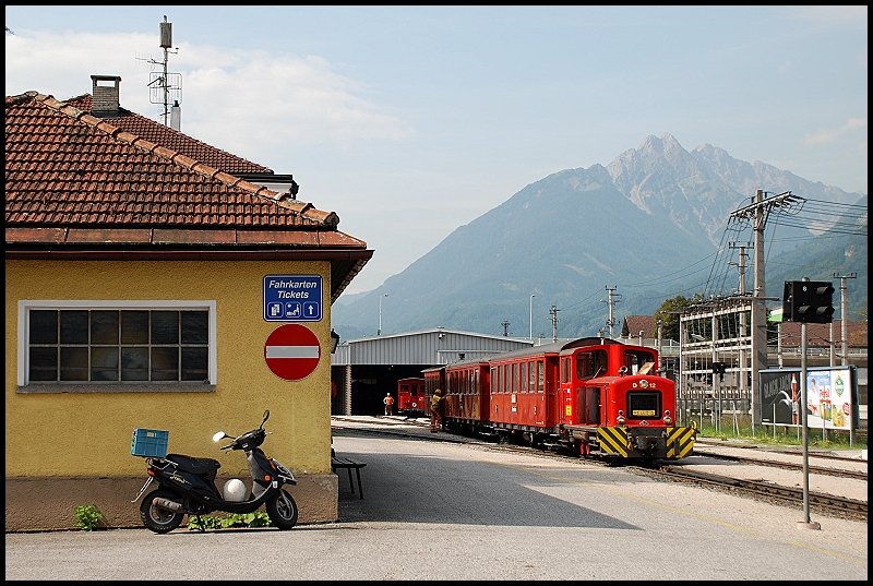 Österreichurlaub 2008 - Zillertalbahn: Die D12  Helli 1  rangier am 03.September 2008 ein paar Wagen um. Aufgenommen in Jenbach.