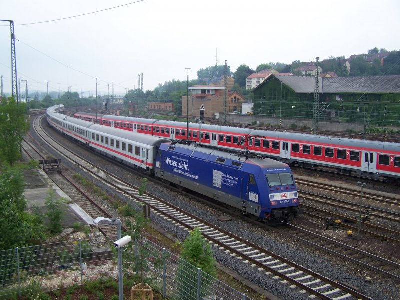 Die Br.101 136-0  Klaus-Trischa-Preis  fuhr am 2.Juni.07 von Karlsruhe Hbf nach Nürnberg Hbf, hier bei der Ausfahrt des Bahnhofes Aalen.