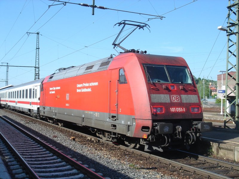 Die Br.101 051-1 mit der Werbelackierung  Unsere züge schonen die Umwelt - Unsere Preise schonen ihren Geldbeutel  stand am 26.04.07 in Aalen und fuhr dan mit dem IC der von Karlsruhe nach Nürnberg fuhr weiter in richtung Nürnberg Hbf. Nächster halt war Ellwangen.