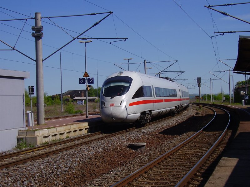 29.04.2007 Aufgrund der Streckensperrung in Bad Kösen wurde der Fernverkehr auf der KBS 595 umgeleitet. Hier ein ICE-T Dresden-Wiesbaden im Bahnhof Artern. Michael Rathmann