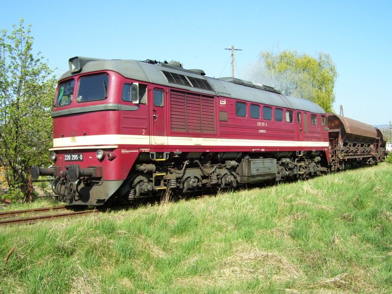 220 295-0 kurz vor Ihrer Abfahrt mit einen Kiesganzzug am 19.04.2007 in Immelborn