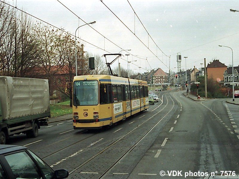 Gtw 1406 der EVAG - Mülheim a/d Ruhr, Aktien Straße - 11. November 1993.