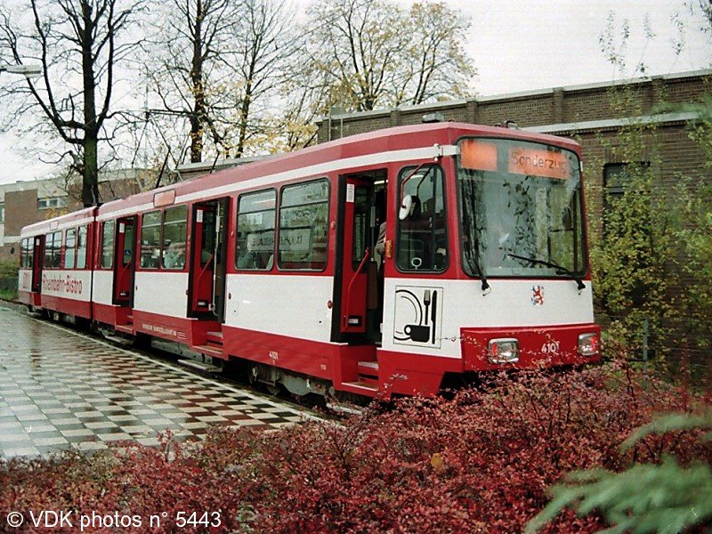 Gtw 4101 Bistrowagen am Endhaltestelle  Kalkumer Schlossallee  am 11. November 1991