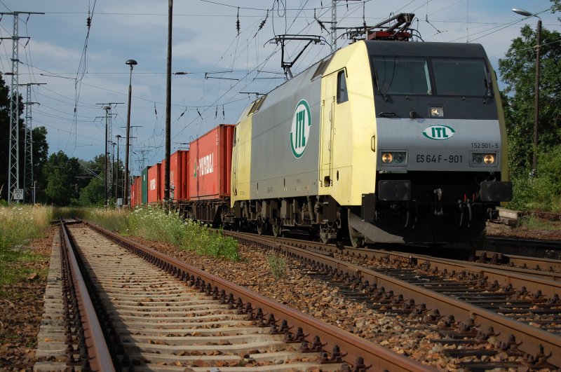 ES 64 F-901 am Morgen des 07.07.2007 durchfährt den Bhf.Elsterwerda.
