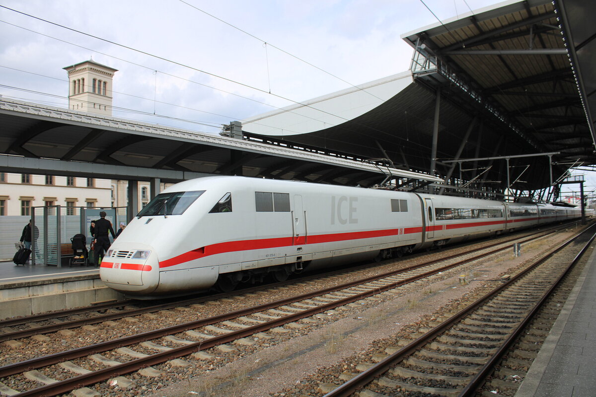DB 401 575-6 als ICE 2511 von Frankfurt (M) Hbf nach Dresden Hbf, am 03.04.2026 in Erfurt Hbf.