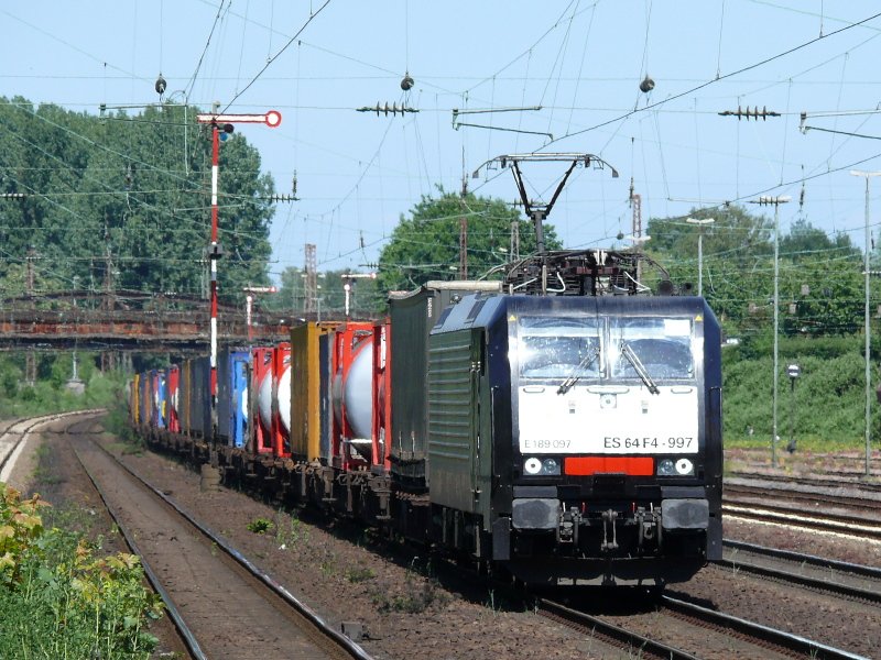 Die "Schwate" 189 097 mit bunten Gz in Düsseldorf-Rath. 23.05.2009.