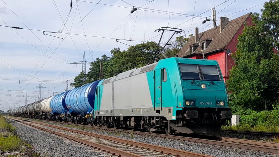 ATLU 185 610-3 in Lintorf mit Kesselwagen am 15.08.21