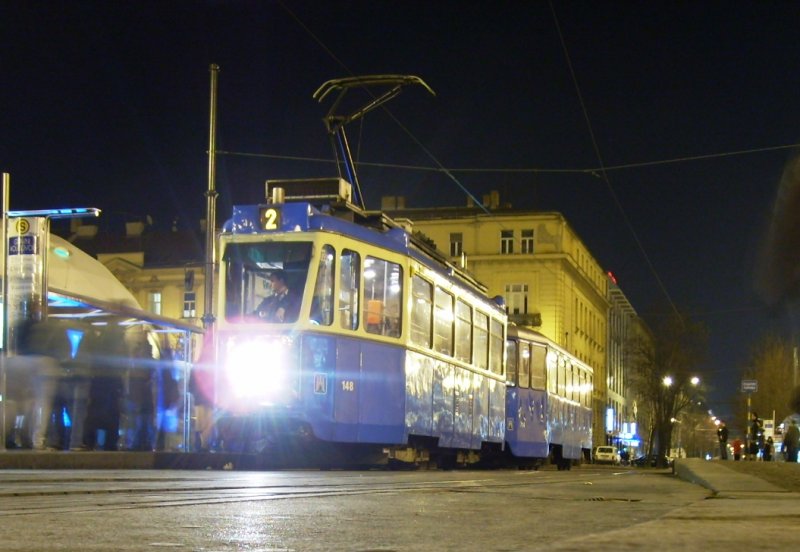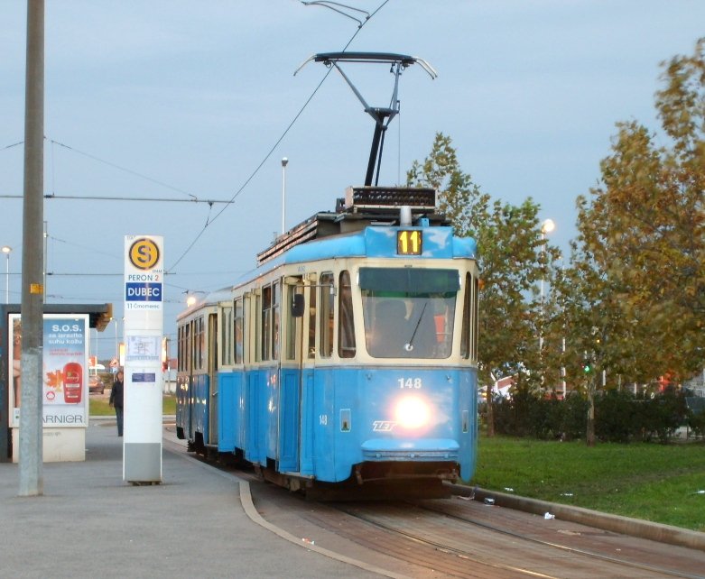 Linie 5 auf der Endhaltestelle Maksimir. (Dieses tram ist auch Weihnachten-tram für die Kinder von Tramfahrers und Tramfahrerins)