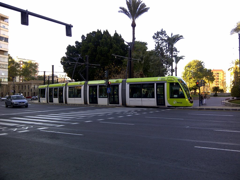 Alstom Citadis 302 am Plaza Circular im spanischen Murcia am 01/12/2012