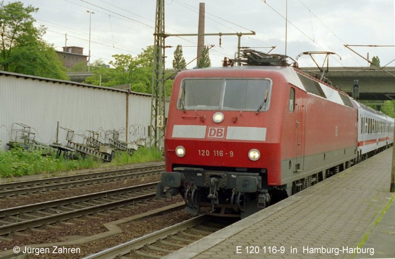 E 120 116-9 in Hamburg-Harburg bei der Ausfahrt Richtung Hannover (Sept. 2004)