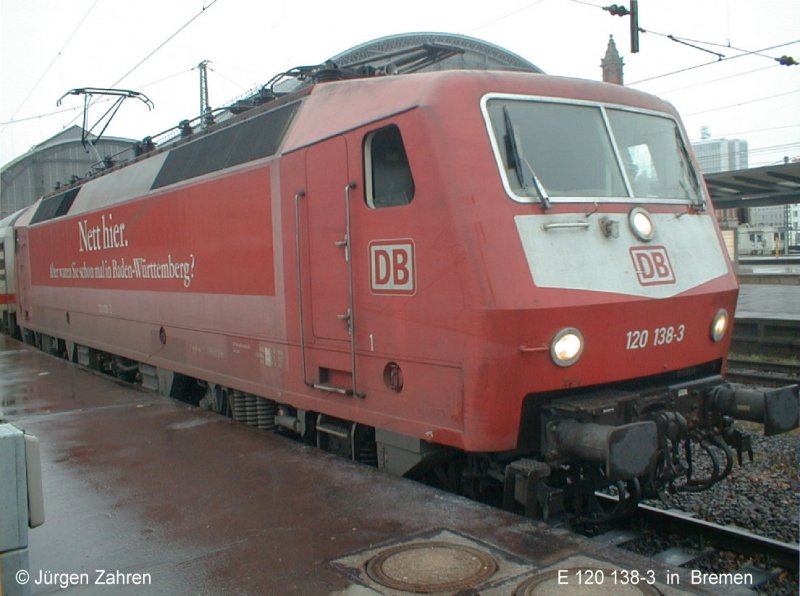 E 120 138-3 steht abfahrbereit am Bahnsteig in Bremen-Hbf.(Dez. 2001)