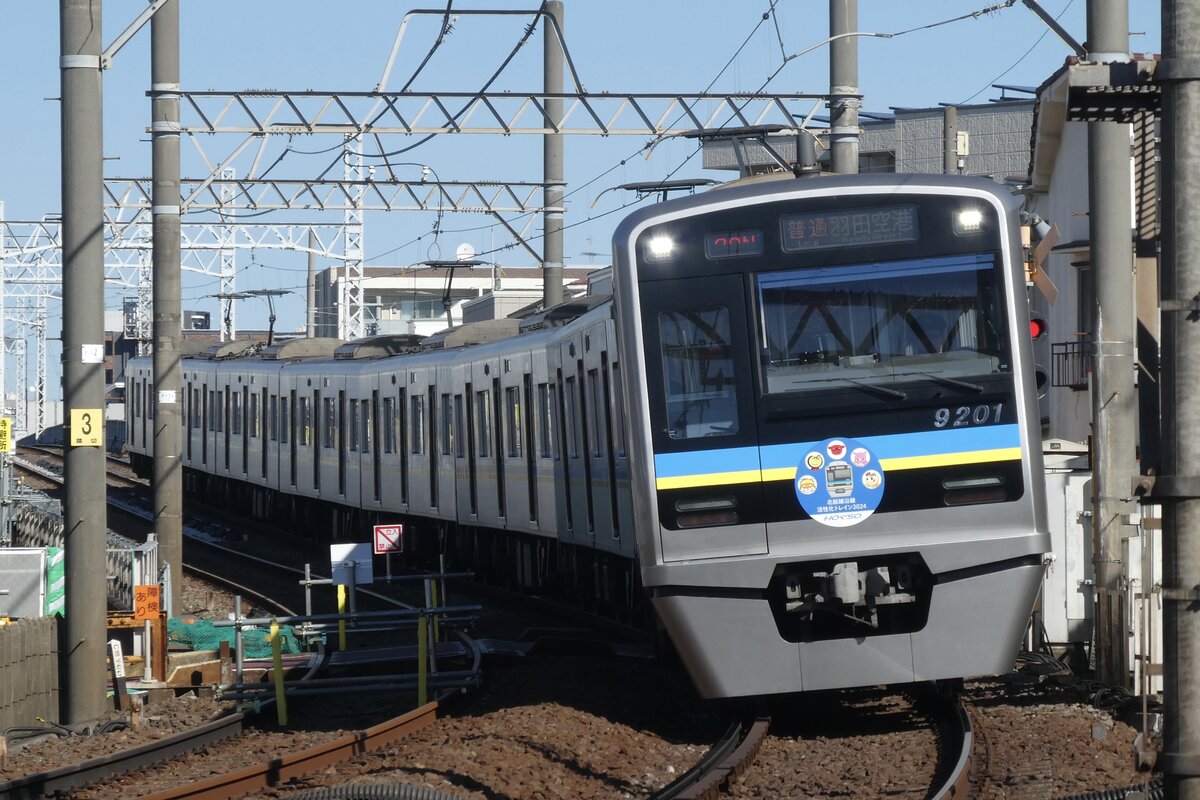 Odakyû Konzern serie 2000 "Not in Service" fährt am Bahnhof Gôtokuji vorbei. Die Züge auf der linken Seite sind die Serien 3000 und 60000. 19.05.2024