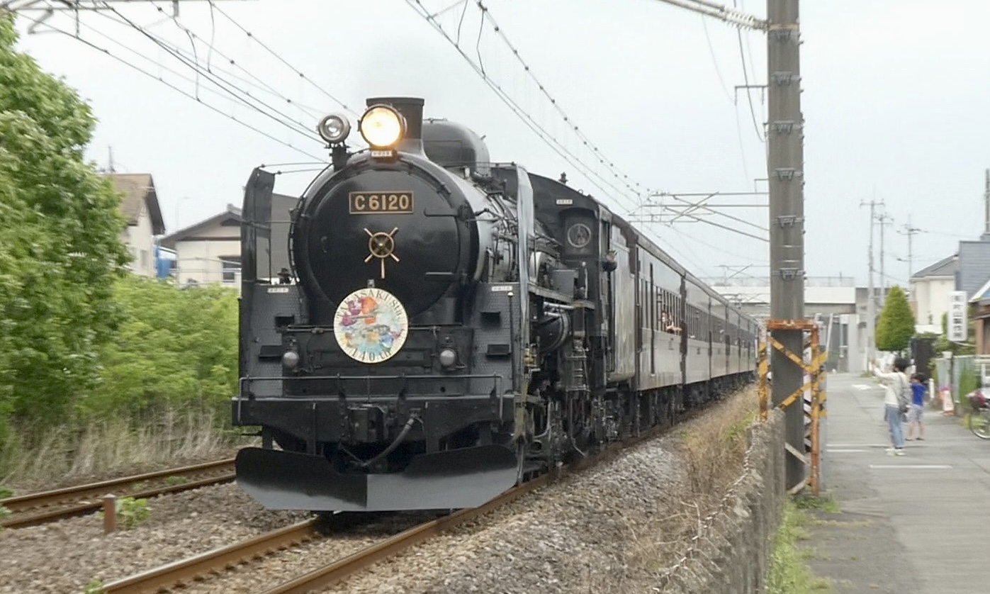 Bahnhof Takasaki Gedenkzug zum 140-jährigen Jubiläum mit die Dampflok C61-20, unterwegs von Yokokawa nach Takasaki, erschossen am 29.04.2024. Der Bahnhof Takasaki wurde am 01.05.1894 eröffnet. Der Gedenkzug soll bis zum 05.05.2024 fahren.