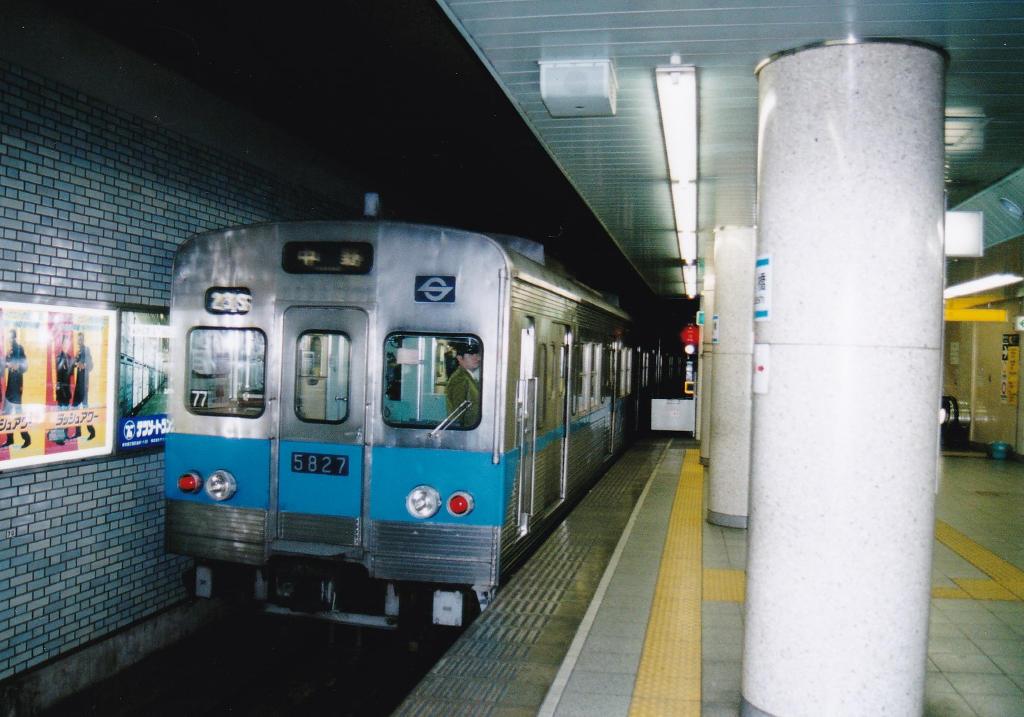 Eidan (U-Bahn Tokio) Serie 5000 Tôzai Linie, am bahnhof Nihombashi, 1990er jahre.