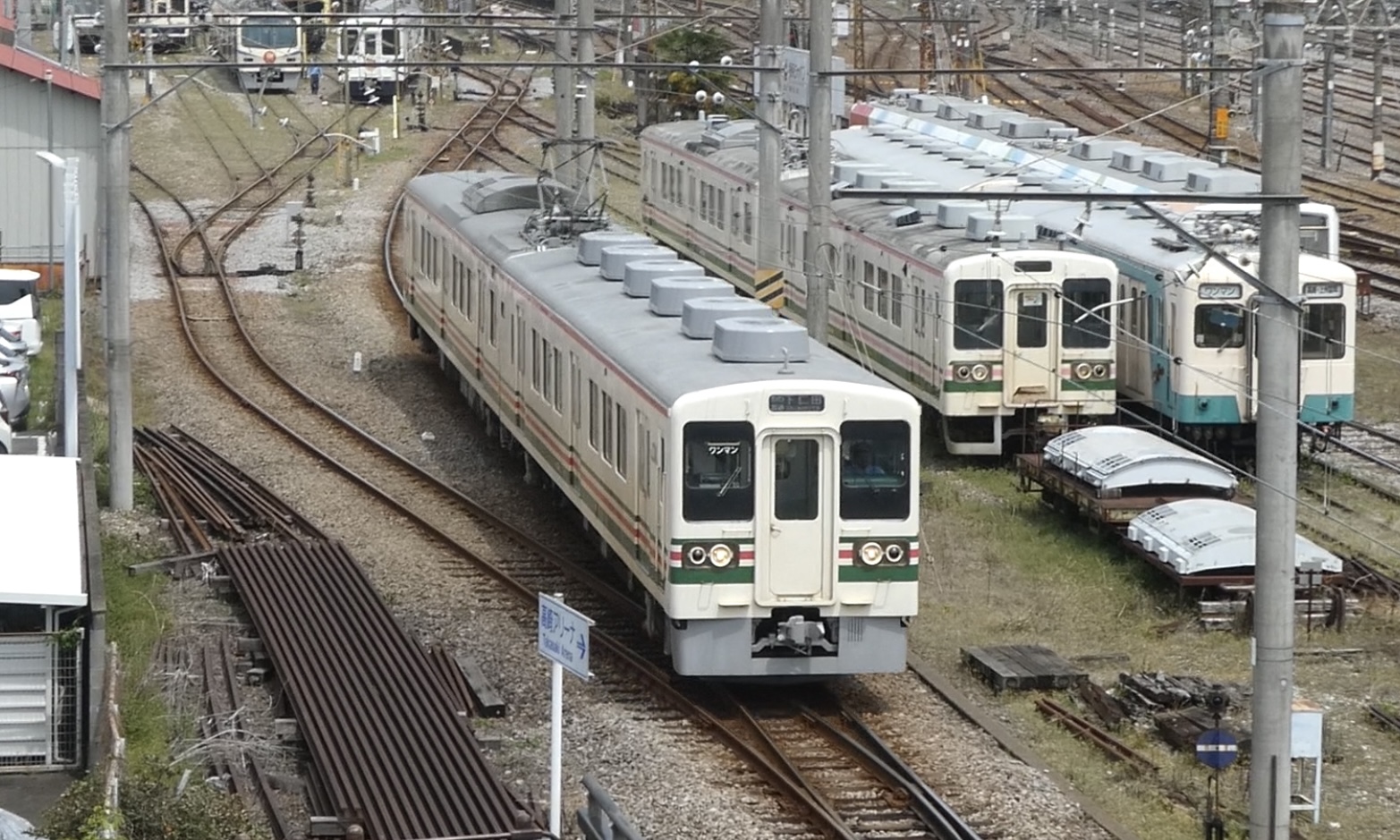 Privatbahn Jōshin-Dentetsu serie 700 als Nahverkehrszug nach Shimonita, erschossen in nähe des bahnhof Takasaki, am 29.04.2024. Dies war ursprünglich die JR serie 107.