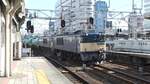 Der Güterzug mit E-Lok EF210-1 fährt am Bahnhof Ayase vorbei. Der Triebzug auf der rechten Seite ist die Tokyo Metro serie 16000. 12.05.2024