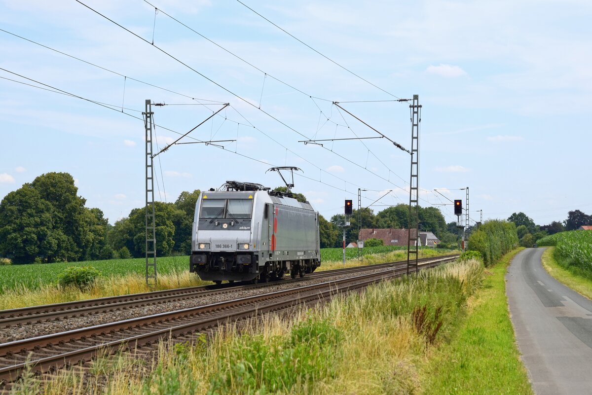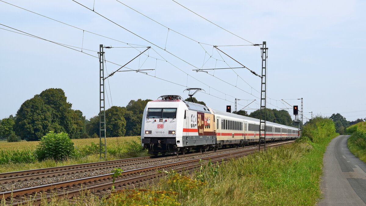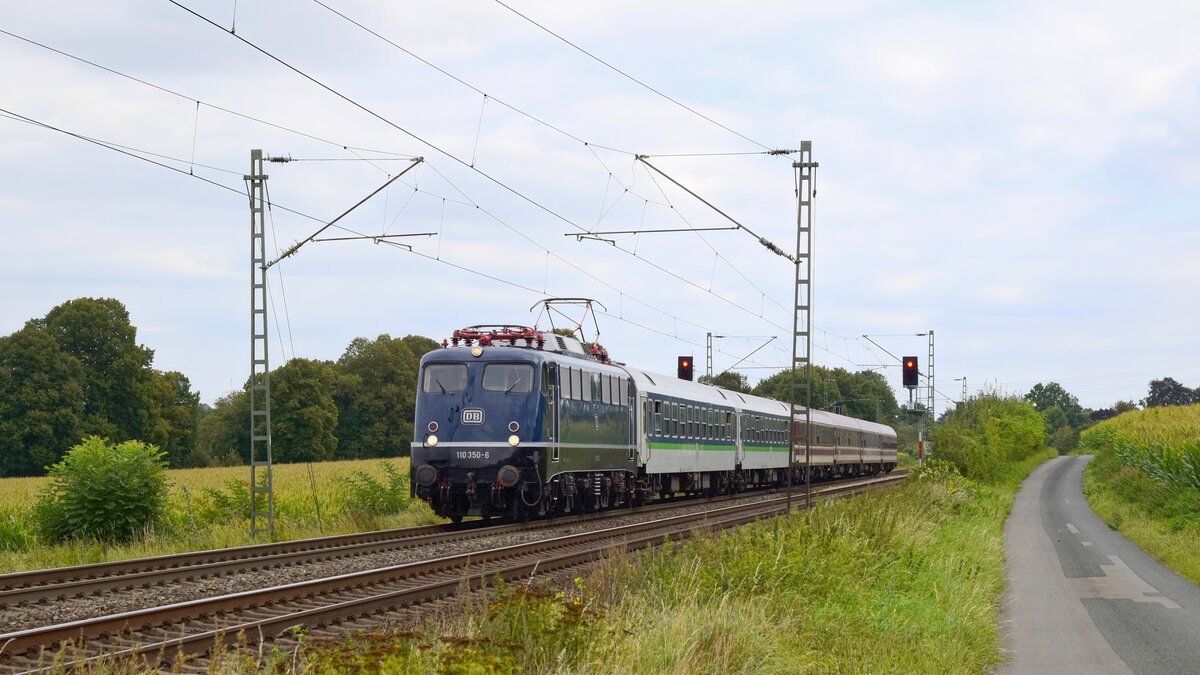 Centralbahn (ex DB Fernverkehr) 110 278-9 (91 80 6115 278-4 D-CBB) mit "Säufer"-Leerzug in Richtung Osnabrück (Bohmte-Stirpe, 05.09.2025). Reinhard Kühn