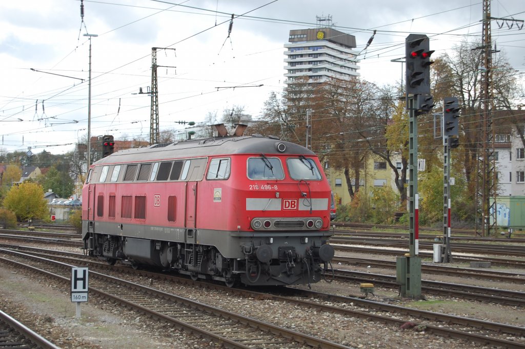 Regelmäßig kommen die Loks der BR 218 des Betriebshofes Kempten nach Ulm, so auch 218 464-6, welche ich am 26.10.2009 in Ulm auf den Chip brennen konnte.