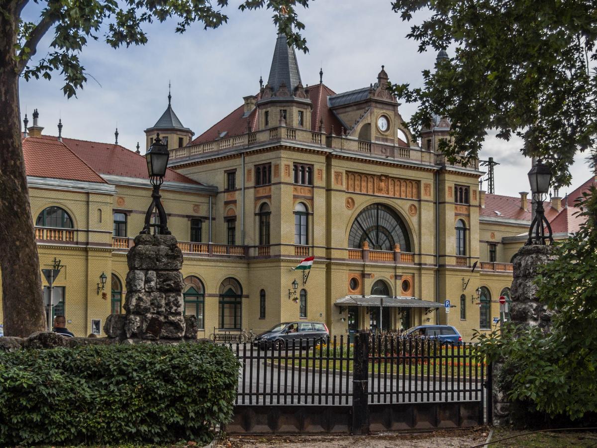 Das Bahnhofsgebäude von Pécs wurde im Jahre 2015, von ca 5 Mio. Euro saniert. Aufnahmedatum: 02.07.2017