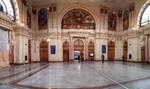 Die schön renovierte -aber kaum ausgenutzte- Seitenhalle des Ostbahnhofes (Budapest Keleti) am 23.09.2017.