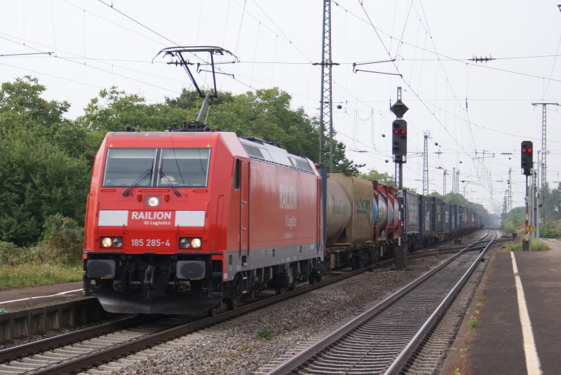 BR 185 285 braust mit einem Güterzug durch den Bf Müllheim ( Baden )