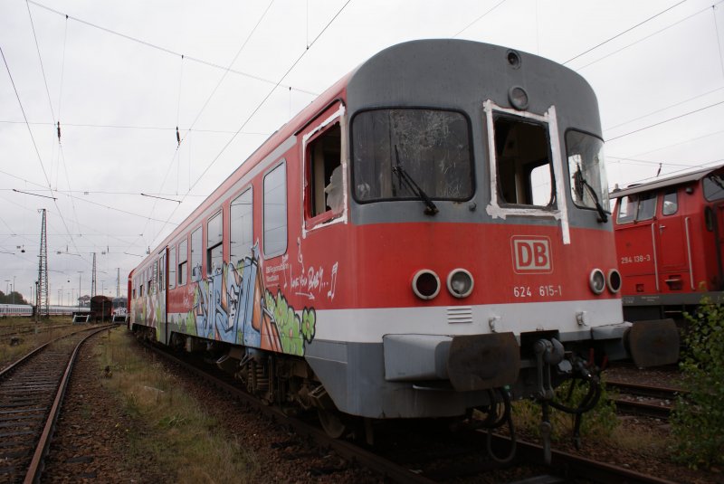 BR 624 615- 1 steht beim DB-Stillstandlager im Karlsruher GBF. Das ahrzeug ist in einem Traurigem Zustand .