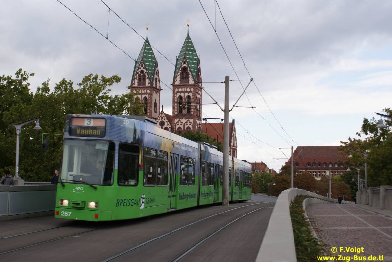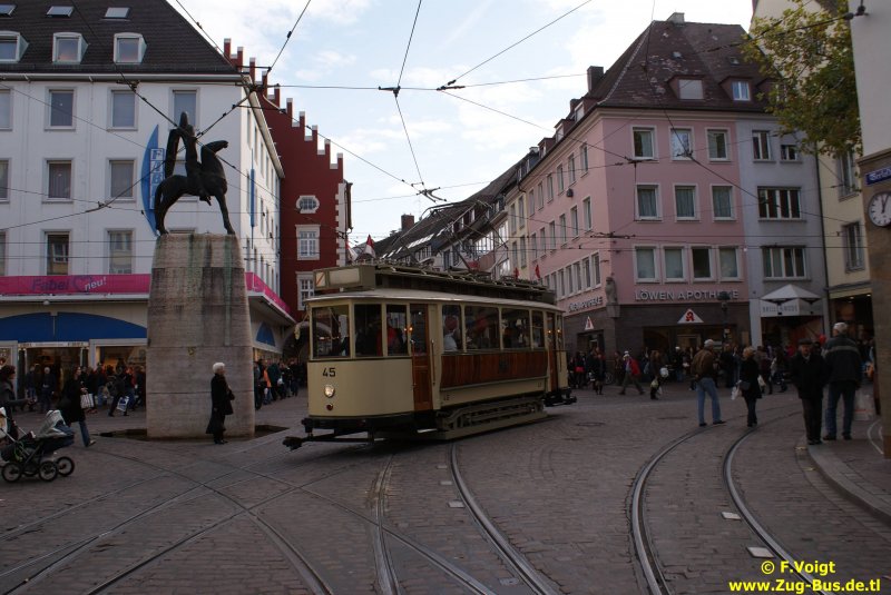 Tw 45 am Bertholsbrunnen in Freiburg . Gefahren ist er da die Linie 2 wiedereröffnet wurde .