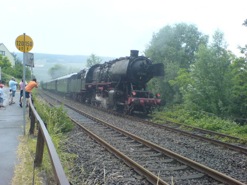 50 2740 der Ulmer Eisenbahnfreunde schiebt ihren Sonderzug von Bad Kreuznach nach Bingen Hbf.Das Bild entstand am BÜ kurz vor Bingen Hbf (Zuglok war 58 311).08.06.08