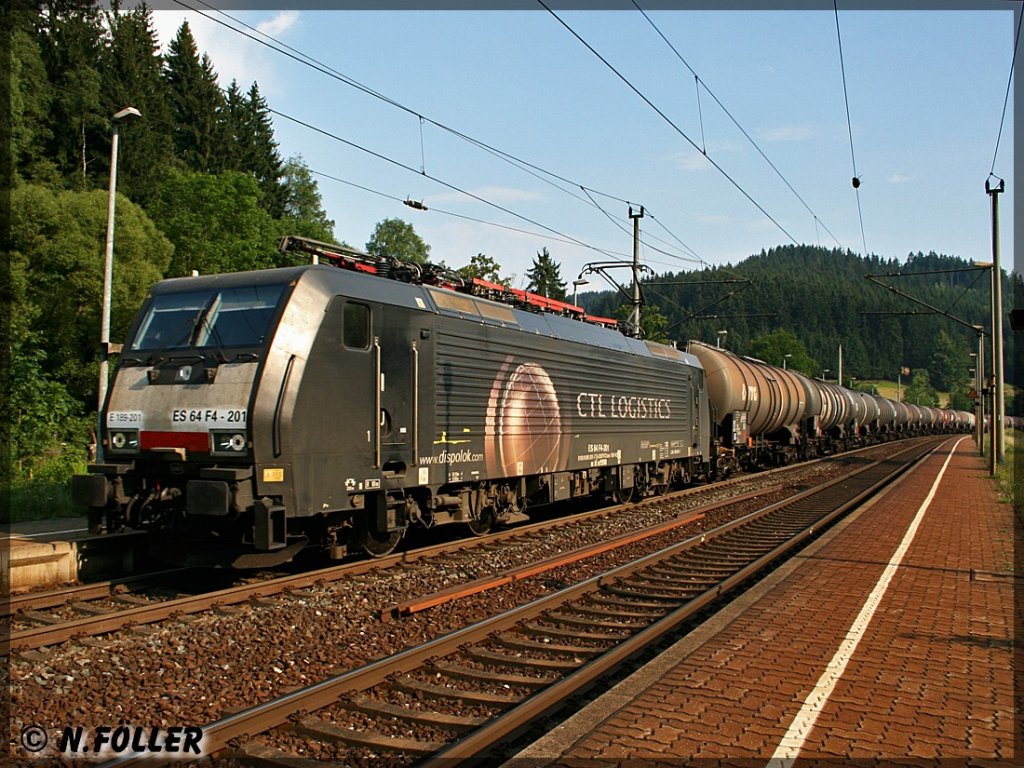 Railion 189 061 mit LKW-Walter Zug durchfährt den Bahnhof Förtschendorf in Richtung Saalfeld am 04.07.2012