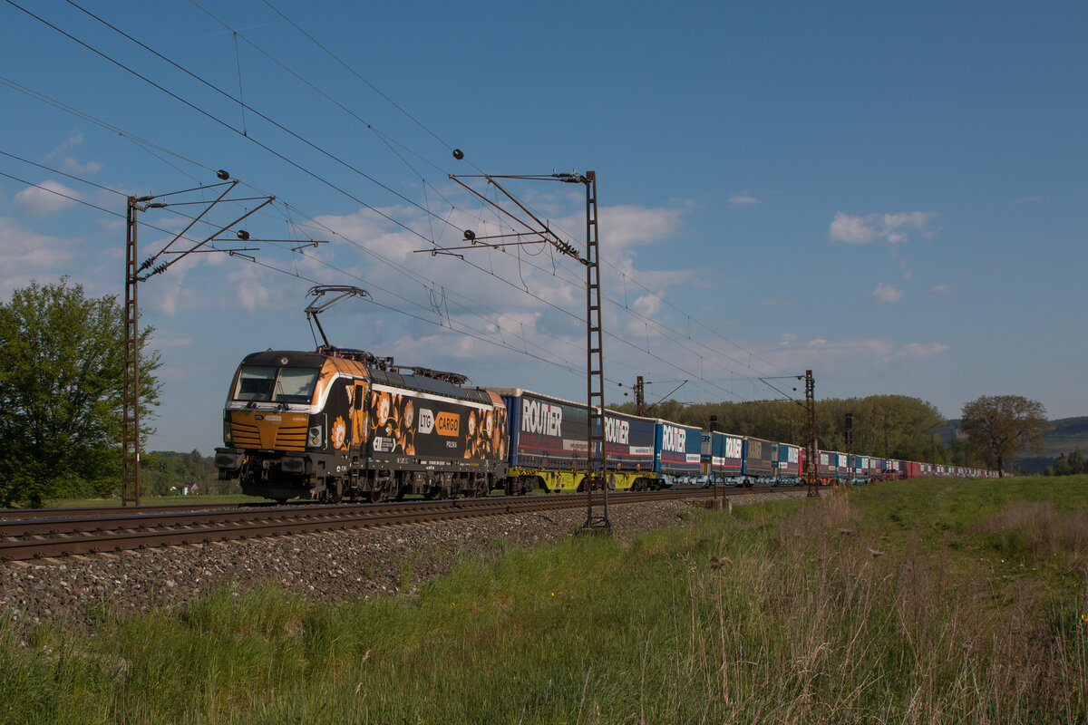 Endlich hat es mal mit einem bunten Vectron der TX Logistik an einem der Rostocker KLV geklappt. Hier ist 193 557-6 mit ihrem Zug auf dem Weg nach Rostock Seehafen in Kronskamp zu sehen. Fotografiert am 11.05.2025. Christian Geschonneck
