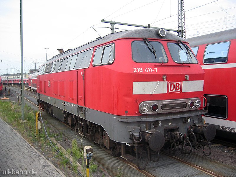 BR 218 411-7 im Abstellbereich von Koblenz Hbf am 6.8.2006