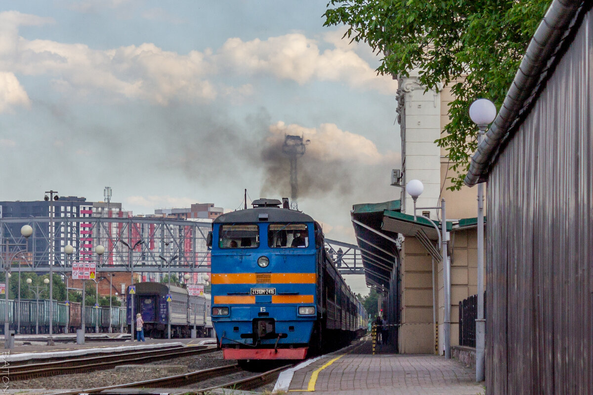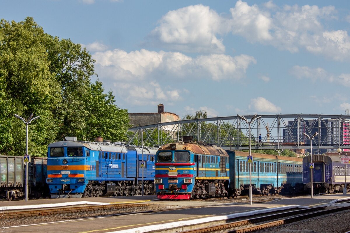 Diesellokomotive 2TE10UK-0275 kommt mit einem Güterzug aus Khryplyn an und Dieselzug DTL1-1051 wartet auf die Abfahrt nach Kolomyia / Ivano-Frankivsk, Ukraine / 25.06.2025 Michal Búta