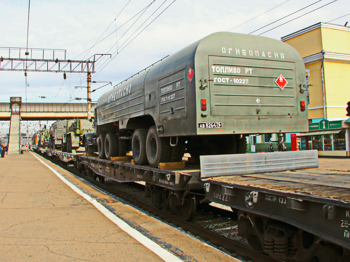 Blick von hinten auf einen Militärzug in Ulan Ude am 17. September 2017.