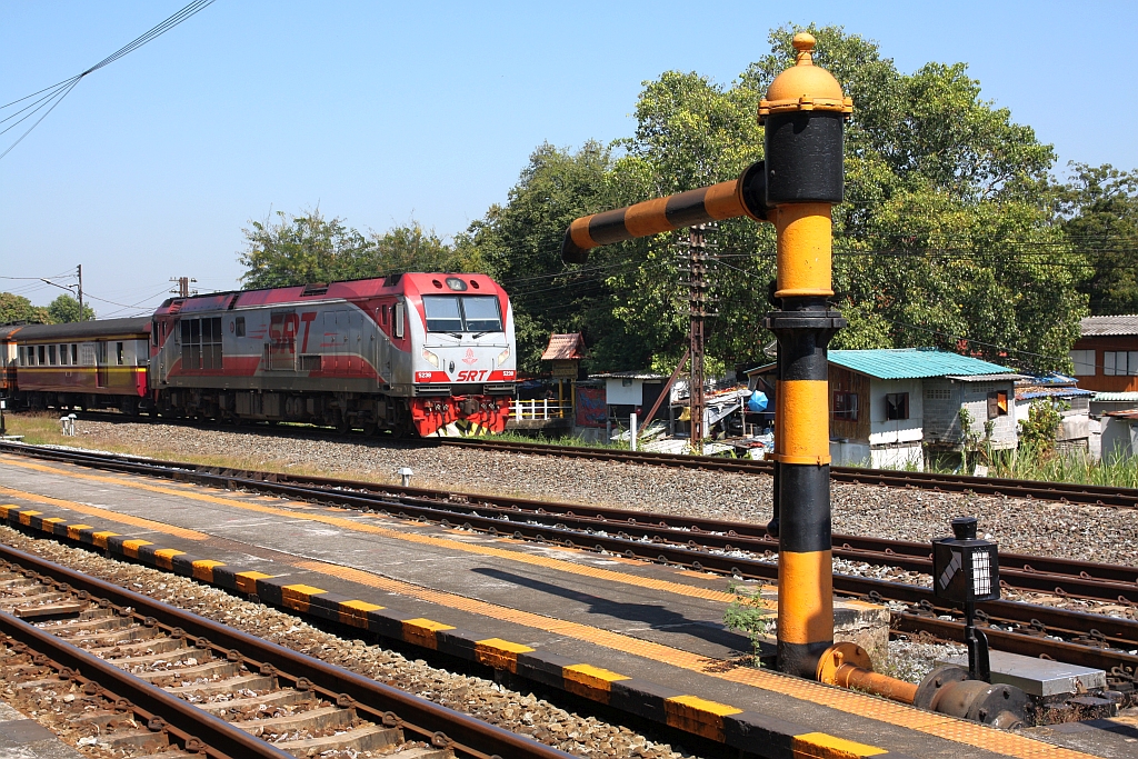 ADD 4415 (Co'Co', de, Alsthom, Bj.1985) fährt am 01.Dezember 2025 mit dem ORD 233 (Hua Lamphong - Surin) in die Ayutthaya Station ein. Karl Seltenhammer