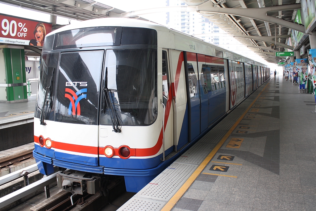 BTS (Skytrain) Triebwagen 1113 am 16.März 2011 in der Phrom Phong Station (E5).