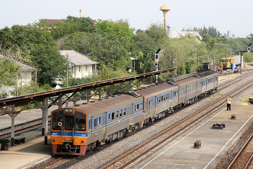 Der von der GEA 4549 (Co'Co', de, General Electric, Bj.1995) gezogene ORD 208 (Nakhon Sawan - Hua Lamphong) verlässt am 26.März 2024 die Chiang Rak Station. Karl Seltenhammer