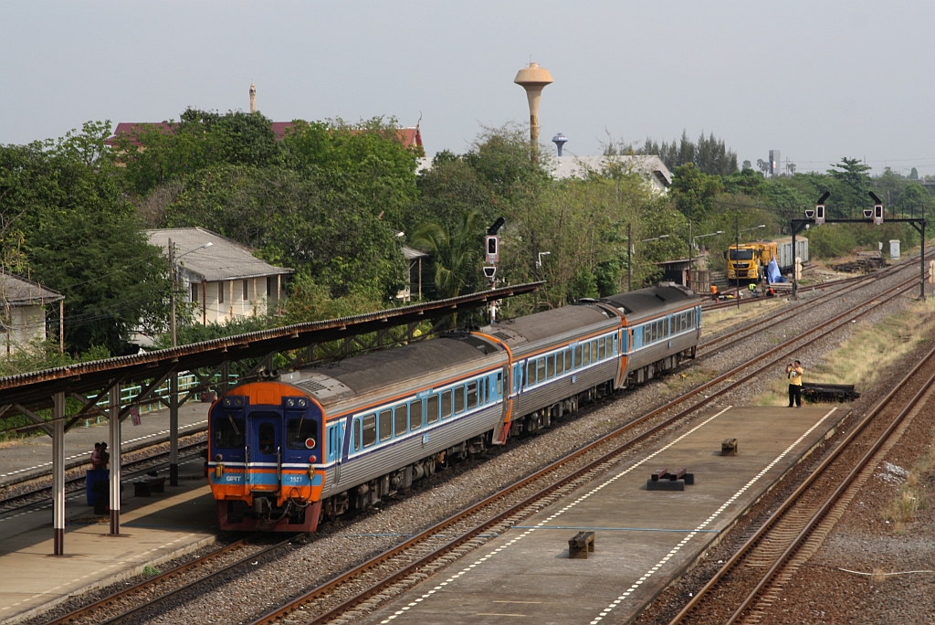 Sp.EXP 7 (Krung Thep Aphiwat - Chiang Mai) mit dem APD.60 2542 als erstes Fahrzeug fährt am 26.März 2024 durch die Chiang Rak Station. Karl Seltenhammer