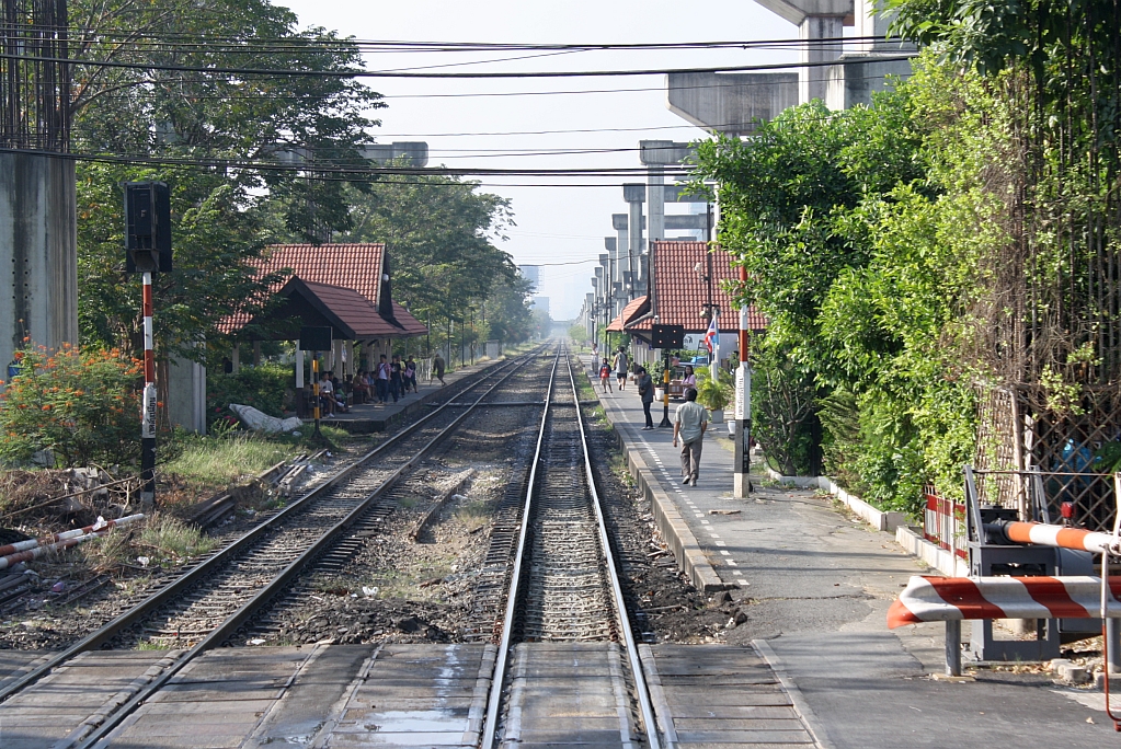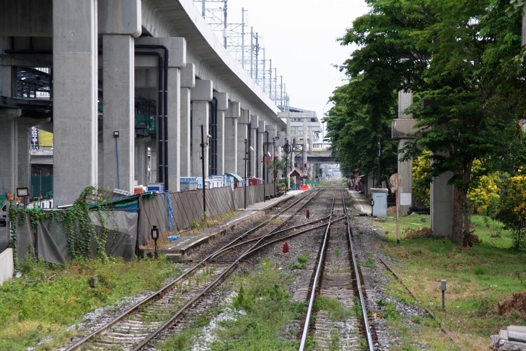 SRTET Lak Si Station (aufgenommen durch die Stirnwandtüre des letzten Wagen des ORD 207) am 28.April 2023. - Die beiden inneren Gleise werden seit der Inbetriebnahme der Krungthep Aphiwat Station der SRT (vorher Bang Sue Grand Station genannt) am 19.Jänner 2023 von den Zügen der Northern und Northeastern Line ohne Halt zwischen Krungthep Aphiwat Station bzw. Nikhom Rotfai Km. 11 Station und Don Muang Station befahren. Karl Seltenhammer