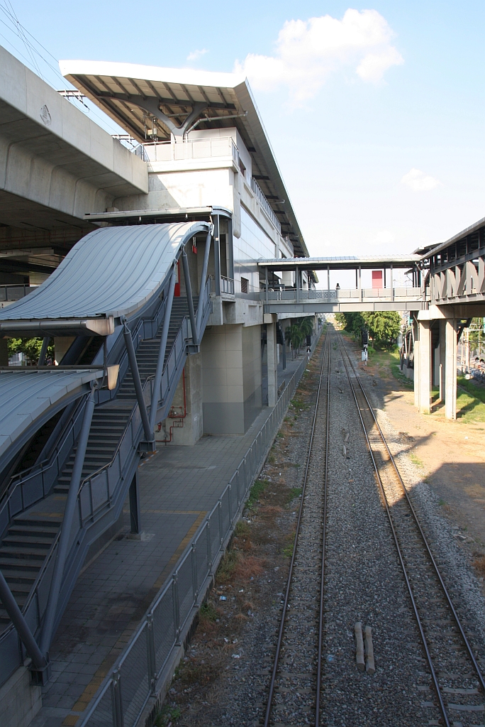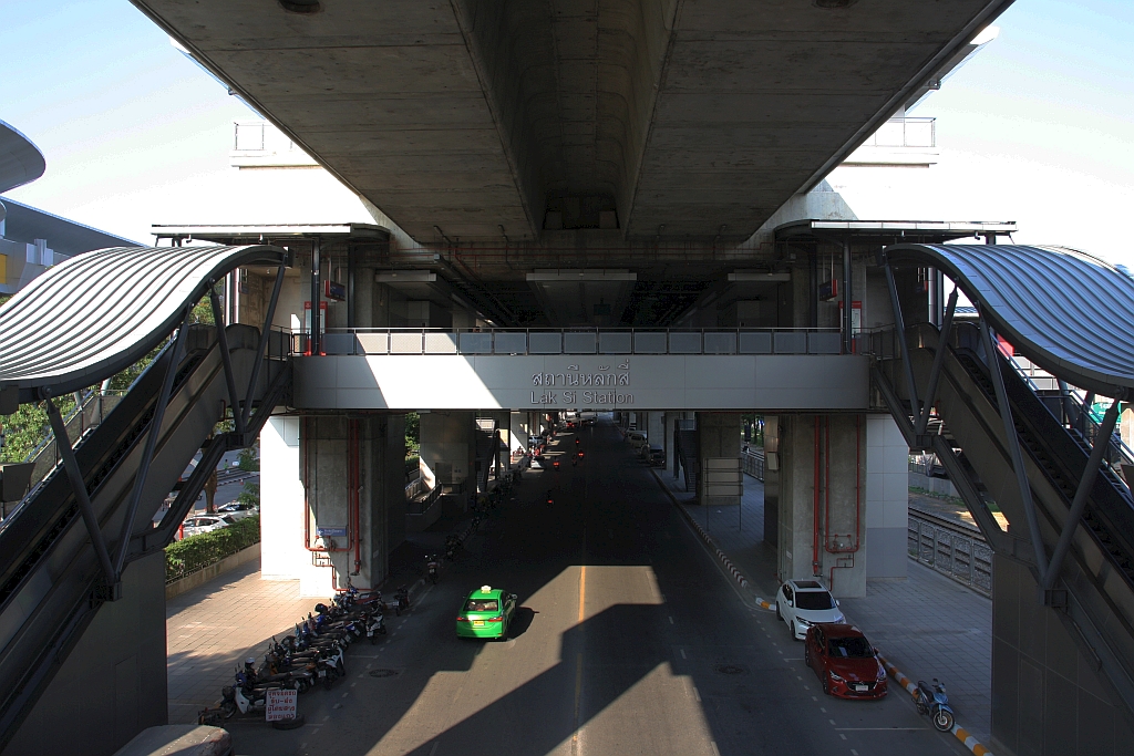 Zwei der Zugänge zur SRTET Lak Si Station (RN06) am 11.Dezember 2023. - Rechts bzw. unterhalb davon die planmäßig nicht mehr befahrene Trasse der SRT Northern Line. Die SRT Züge benützten seit Inbetriebnahme der Krungthep Aphiwat Station am 19.Jänner 2023 bis Rangsit die Hochtrasse. Karl Seltenhammer
