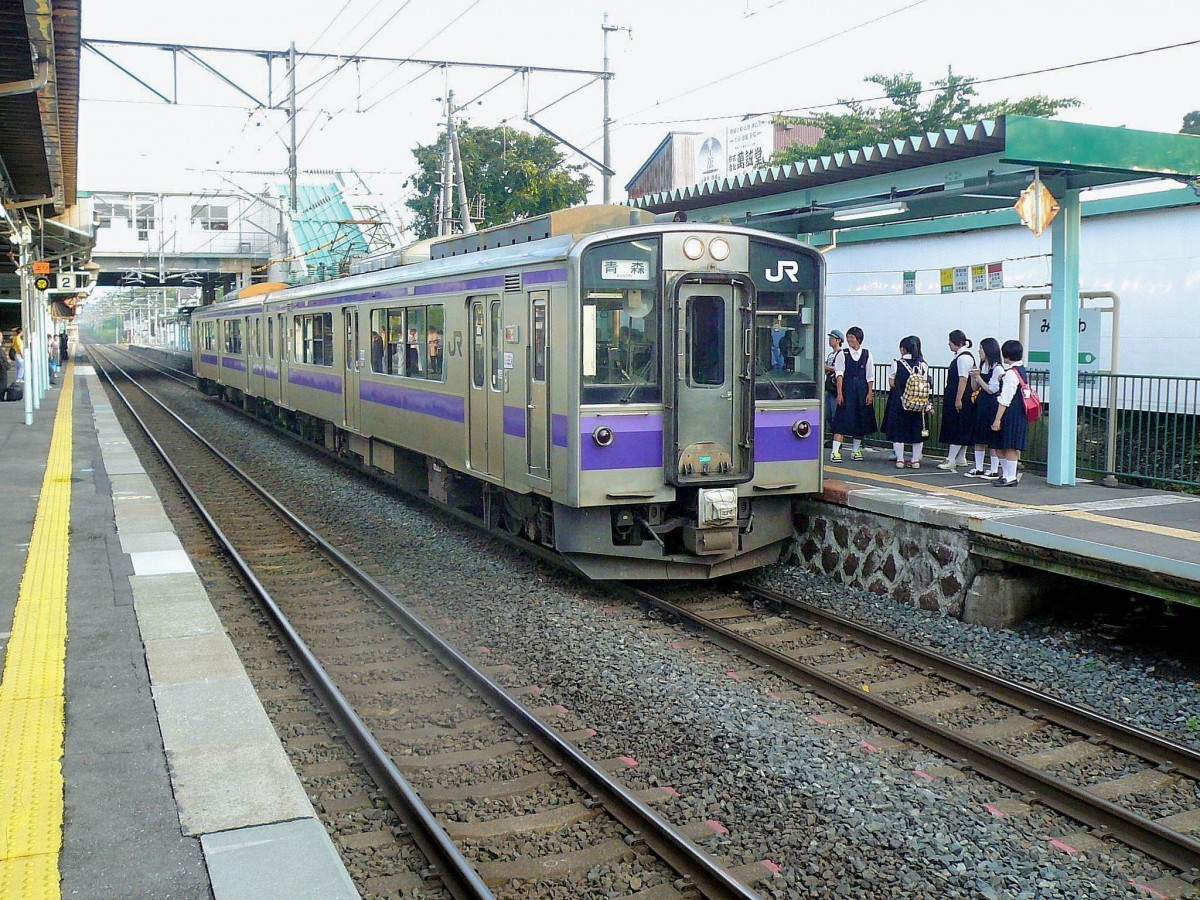 Serie 701 des Bezirks Morioka: Einfahrt des Zuges 701-1005 in Misawa, 8.Juli 2010. Die Strecke im hohen Norden gehört heute der Aoi Mori-Bahn, der Triebzug ist heute Aoi Mori-Bahn 701-6. Peter Ackermann