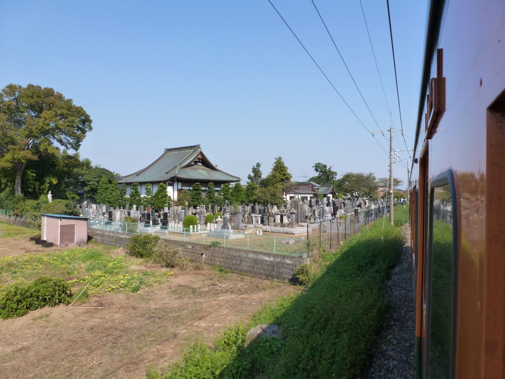 Serie 115 des zentraljapanischen Hochlands: Aufnahme aus einem Zug der Serie 115 der Ryômô-Linie dem Fuss des zentraljapanischen Gebirges entlang. Der lokale Charakter der Landschaft mit seinen Tempeln und Gräbern steht im Wechsel zu zahlreichen mittelständischen Industrieanlagen. 8.Oktober 2011. Peter Ackermann