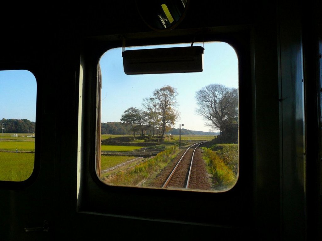 Auf der Fahrt in Wagen 2004 - eine wunderschöne Landschaft mit sanften Wäldern und Reisfeldern. Zwischen Kaneage und Nakane, 26.November 2009. Peter Ackermann