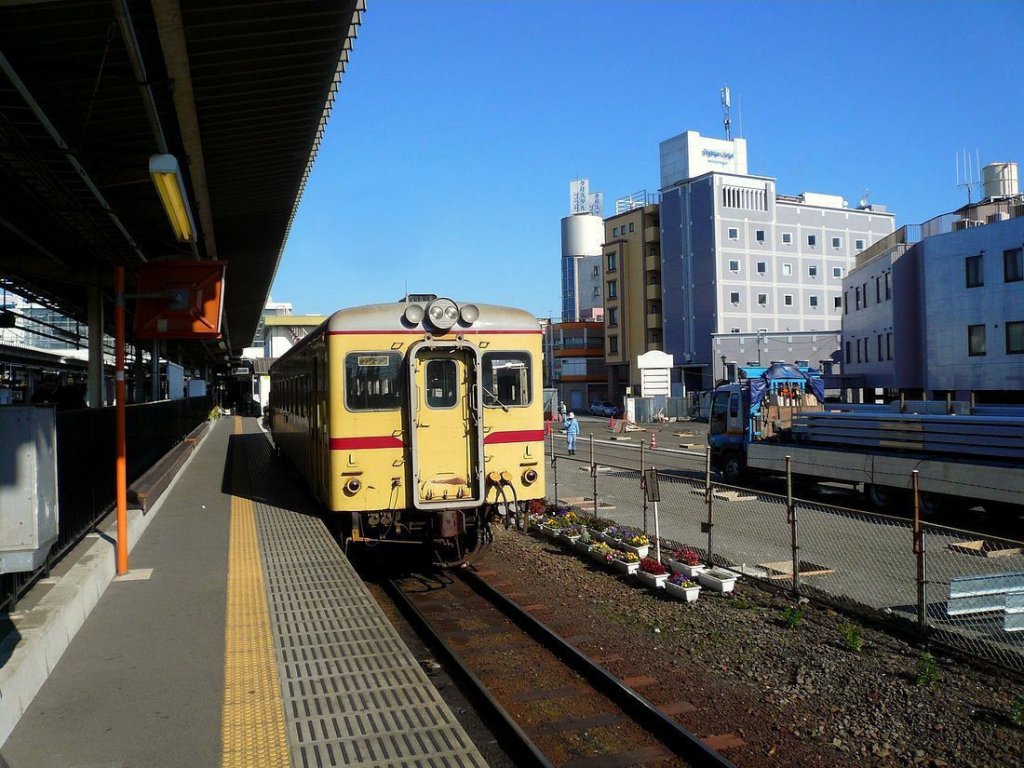Mitte 1990er Jahre wurden 5 ehemalige Staatsbahn-Lokaltriebwagen Serie KIHA 20 als Nr. 201-205 übernommen. Nr. 205 (Baujahr 1965) ist in Betrieb geblieben und trägt den ursprünglichen rot-weissen Anstrich der Staatsbahnzeit. Links davon ist eine alte, 2005 stillgelegte Diesellok zu sehen. Naka Minato, 26.November 2009. Peter Ackermann