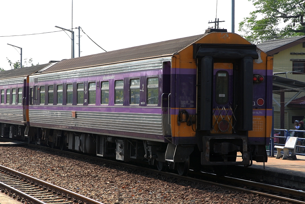 บชส. 1211 (บชส. =BTC./Bogie Third Class Carriage) am 24.März 2024 als letztes Fahrzeug des ORD 258 (Nam Tok - Thon Buri) in der Sala Ya Station. Karl Seltenhammer