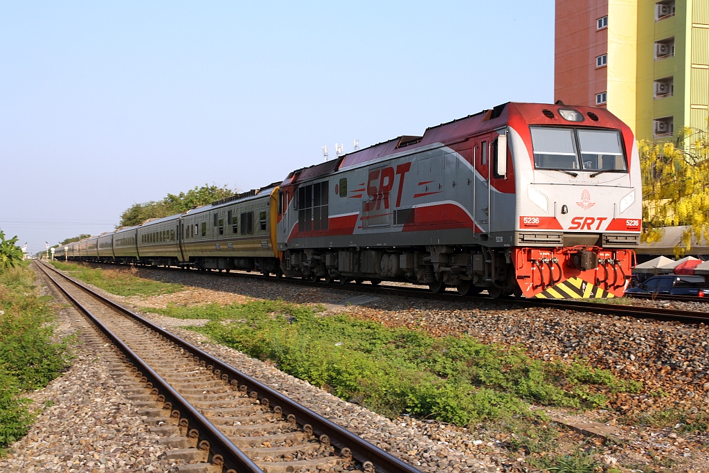 QSY 5236 (Co'Co', de, CRRC Qishuyan, Bj.2022) am 24.März 2024 mit den Sp.EXP 31 (Krung Thep Aphiwat - Hat Yai) in der Sala Ya Station. Karl Seltenhammer