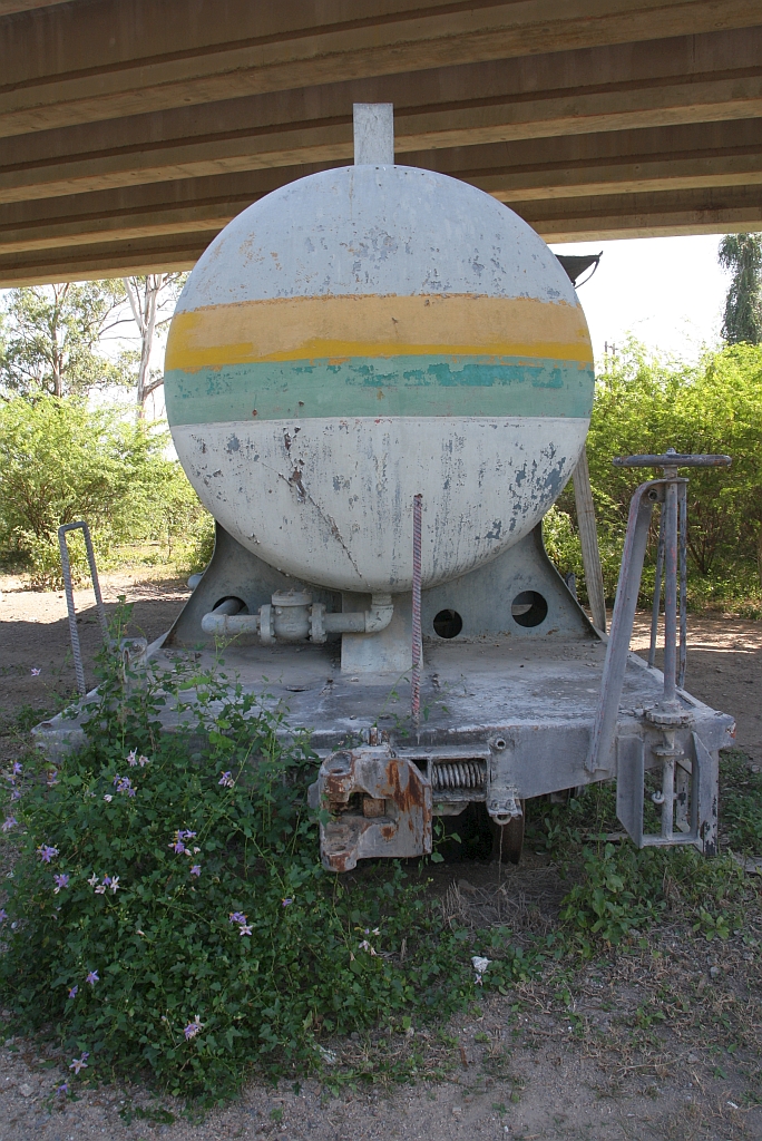 Auf den nur mehr gelegentlich vorhandenen Gleisresten der ehemaligen, rund 4,5 Km langen Anschlussbahn von der Cha Am Station ins Zementwerk der Asia Cement Public Co.,Ltd. (bis 2003 Jalaprathan Cement Co., Ltd.) wurden unter der im Zuge des 2 gleisigen Ausbau der Southern Line errichteten Bahnüberführungsbrücke drei บ.ซ.ล. (บ.ซ.ล. =B.C.P./Bogie Cement Pressure Discharge Wagon) "vergessen". Die Wagen haben keine Betriebsnummern, jedoch das Logo der Jalaprathan Cement Co., Ltd. - Bild vom 09.Dezember 2023. Karl Seltenhammer