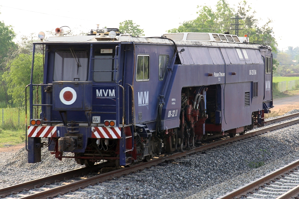 Gleisstopfmaschine (Hersteller: Plasser & Theurer, Type 08-32U, Baujahr: ???, Fab.Nr.: ???) des Unternehmen MVM mit der Betriebsnummer T2 am 23.März 2025 in der Hua Ngiu Station. Karl Seltenhammer