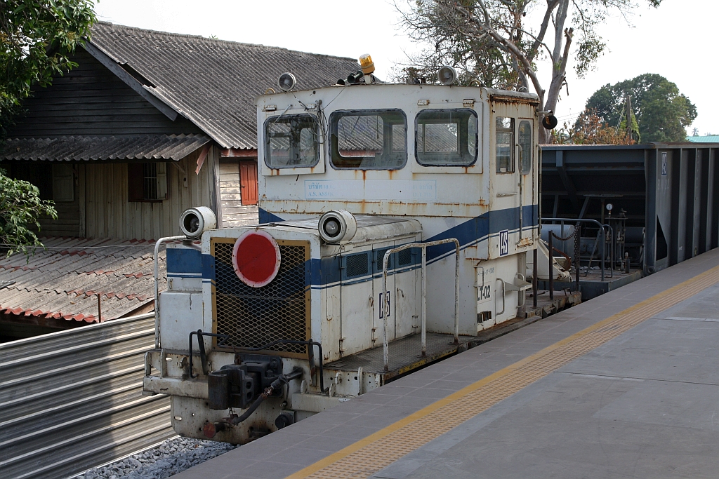 Am 06.Dezember 2024 waren in der Ratchaburi Station einige Fahrzeuge von AS (AS =Associated Engineering (1964) Co., Ltd.) abgestellt, darunter auch die ex JR Hokkaido DD51 1142, ((B')2(B')-dh) mit der AS-Betriebsnummer LT-10. - Dank der neuen hohen Bahnsteige war ein Blick in den Führerstand problemlos möglich.